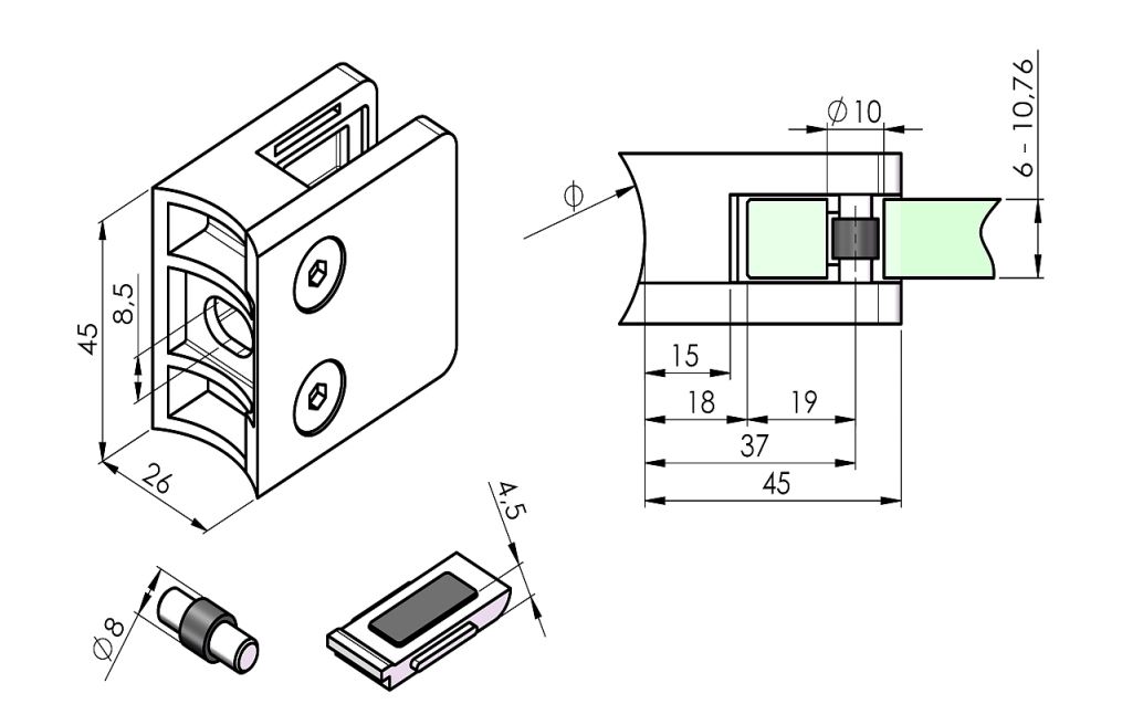 Our stainless steel glass holders/glass clamps are suitable for railings with glass. The glass holders for railings are available in various shapes and provide a secure hold for your glass railing. The V2A glass holders are suitable for glass thicknesses from 6.00 to 12.76 mm.