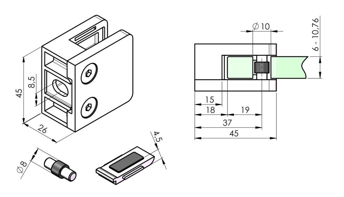 Nuestros soportes de cristal/abrazaderas de cristal de acero inoxidable son adecuados para barandillas con cristal. Los soportes de cristal para barandillas están disponibles en varias formas y proporcionan una sujeción segura para su barandilla de cristal. Los soportes de cristal V2A son adecuados para grosores de cristal de 6,00 a 12,76 mm.